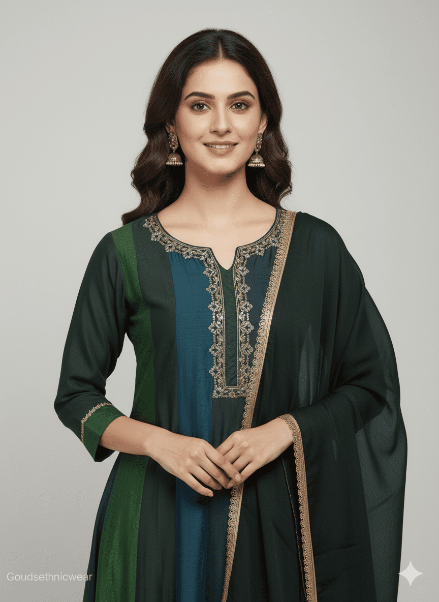 Elevate your Festive Look with our Green Muslin Silk Suit Set
